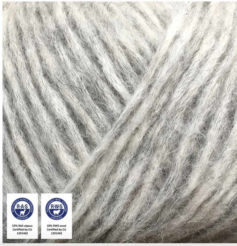 Materiale: 55 % baby alpakka, 10 % ekstra fin merinould og 35 % bomuld