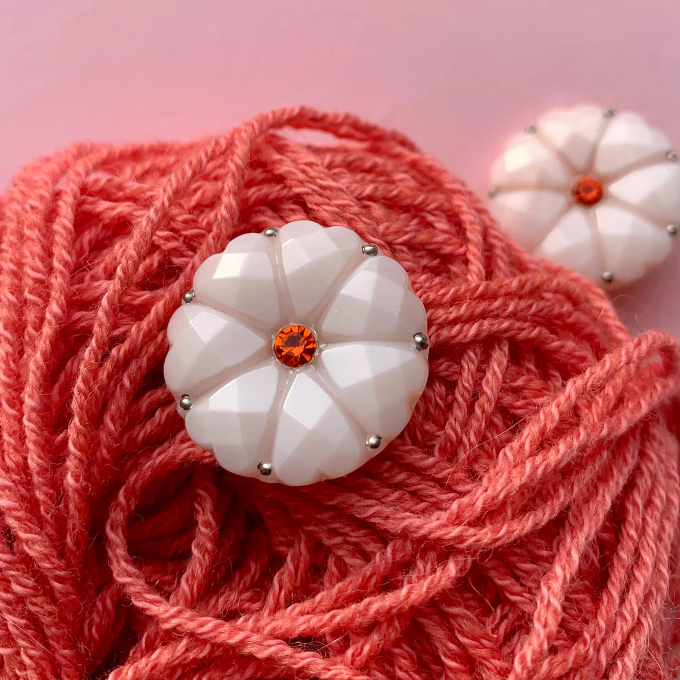Knapperne skal vaskes i hånden. Hvis du centrifugerer din strik med knapperne på, så rul hele strikke ind i et håndklæde, som du fæstner med elastikker, så knapperne er beskyttet mod slag mod tromlen.