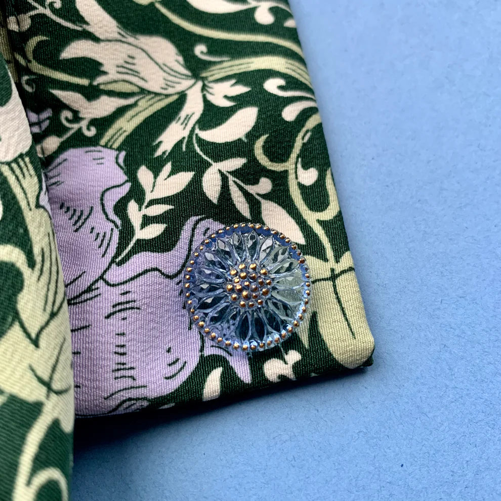 Vi er meget begejstrede for at kunne tilbyde de eftertragtede glasknapper fra danske Fine detail. Hver knap er unik; håndlavet og hånddekoreret efter en århundreder gammel teknik og tradition. Køb en enkelt knap for et helt særligt islæt, eller vær en flottenhejmer og køb en række. Uanset er resultatet eventyrligt.
