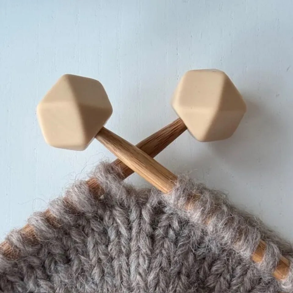 Maskestopperen sættes på spidsen af strikkepindene og sørger både for, at maskerne ikke glider af pindene og beskytter samtidig enden af strikkepinden.
