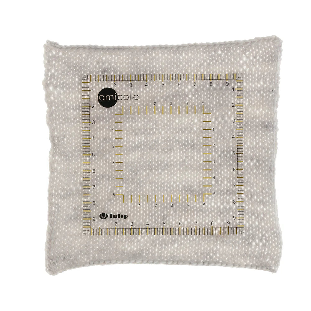 Denne strikkefasthedsmåler er en firkantet lineal, der kan bruges til at tælle antallet af masker indenfor 10x10 cm. Dens gennemsigtighed gør den praktisk og nem at bruge, fordi du kan se maskerne gennem linealen. I midten er der ydermere en hurtig strikkefasthedsmåler på 5 cm, hvor du blot ganger med to for at få strikkefastheden på de 10 cm.